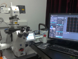 主要技術指標:有獨立可調大小的針孔,調節范圍為連續調節。由3個高靈敏低噪音的光電倍增管構成3個熒光檢測通道,每個熒光檢測器具有獨立的10級可調數碼增益。可自由選擇各通道熒光采集的波長范圍。一個可用于明場和DIC觀察的透射光檢測通道。可通過光譜掃描采集熒光發射光譜,光譜分辨率≤2nm。采用X、Y軸獨立的雙鏡掃描,掃描分辨率在4×1至6144×6144之間自由選擇。通過光譜技術可以進行多光譜圖像的拆分。復消色差熒光光路,可以對所有不同波長進行色差的糾正,使不同波長激發光聚焦在同一聚焦平面上。通過配置的細胞培養裝置,可以完成活細胞追蹤觀察。