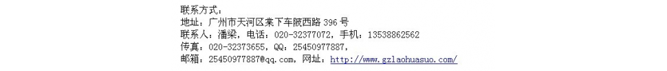郵箱:25450977887@qq.com,網址:http://www.gzlaohuasuo.com/