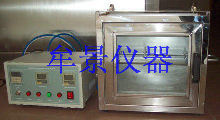 此機符合GB8410、美標FMVSS571.302、DIN7520《汽車內飾材料的燃燒特性》。將試樣水平地夾在U形支架上,在燃燒箱中用規定高度火焰點燃試樣的自由端15S后,確定試樣上火焰是否熄滅,以及試樣燃燒的距離和燃燒該距離所用的時間。內飾材料包括汽車內飾領件所用的單一材料或層積復合材料,如座墊、座椅靠背、座椅套、安全帶、頭枕、扶手、活動式折疊車頂、所有裝飾性襯板、儀表板、雜物箱、室內貨物架板、或后窗臺板、窗簾、地板覆蓋物…..