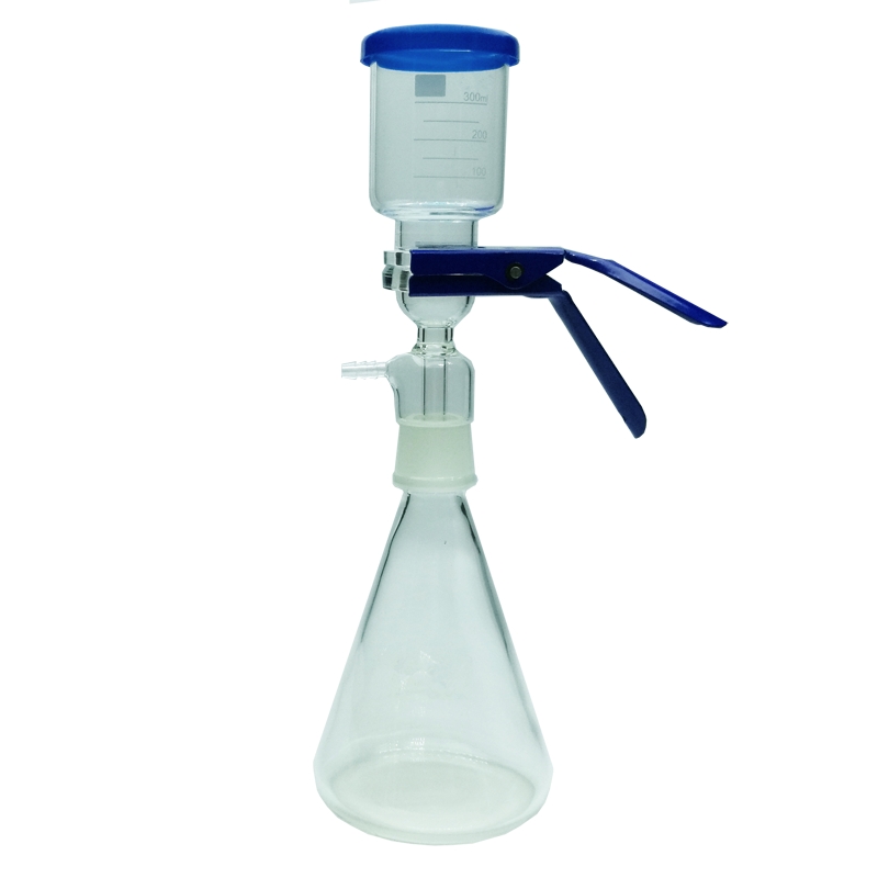 0903不溶性微粒制樣裝置 主要由專用隔膜真空泵和“PULL品牌”砂芯過濾器兩部分組成。其中隔膜真空泵具有真空度大,流速穩定,壓力可調;體積小,結構緊湊,重量輕,移動方便;可無油運行,干凈無污染;可連續24小時持久穩定工作的特點。砂芯過濾器采用優質石英玻璃制造,透明度高,觀察效果好,應力強度大,由圓筒形帶刻度濾杯,砂芯濾器,特制卡夾及1000ml外磨口三角瓶四部分組成。整個裝置連接嚴密,能承受熱壓消毒,法蘭口均為精工平磨,具有良好的密合性能。