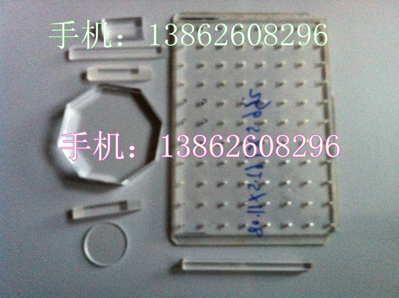 規格尺寸:定做,打孔鉆孔孔徑從0.5mm至50mm等,厚度從0.5mm至50mm等,加工精度達到±0.001mm。打孔形狀:異形孔、打通孔、沉頭孔等,外形形狀:切割任意形狀,如:L形、凸形、凹形、回型、臺階形、異形、各種斜面等。透光率高達99.5%,
