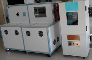 二、 技術特點:設備箱體采用優質鋼材板金加工,表面防靜電,防銹防腐蝕噴涂,設備上部裝有不銹鋼蝕刻面板,面板上裝有人機界面操作屏幕和電源開關等,設備內部有變壓器、調壓器、步進馬達、可編程控制器PLC及高精度電壓變送器等;設備右測有溫控箱,可安裝斷路器試樣;設備底部裝有強力剎車腳輪,方便運輸和移動。
