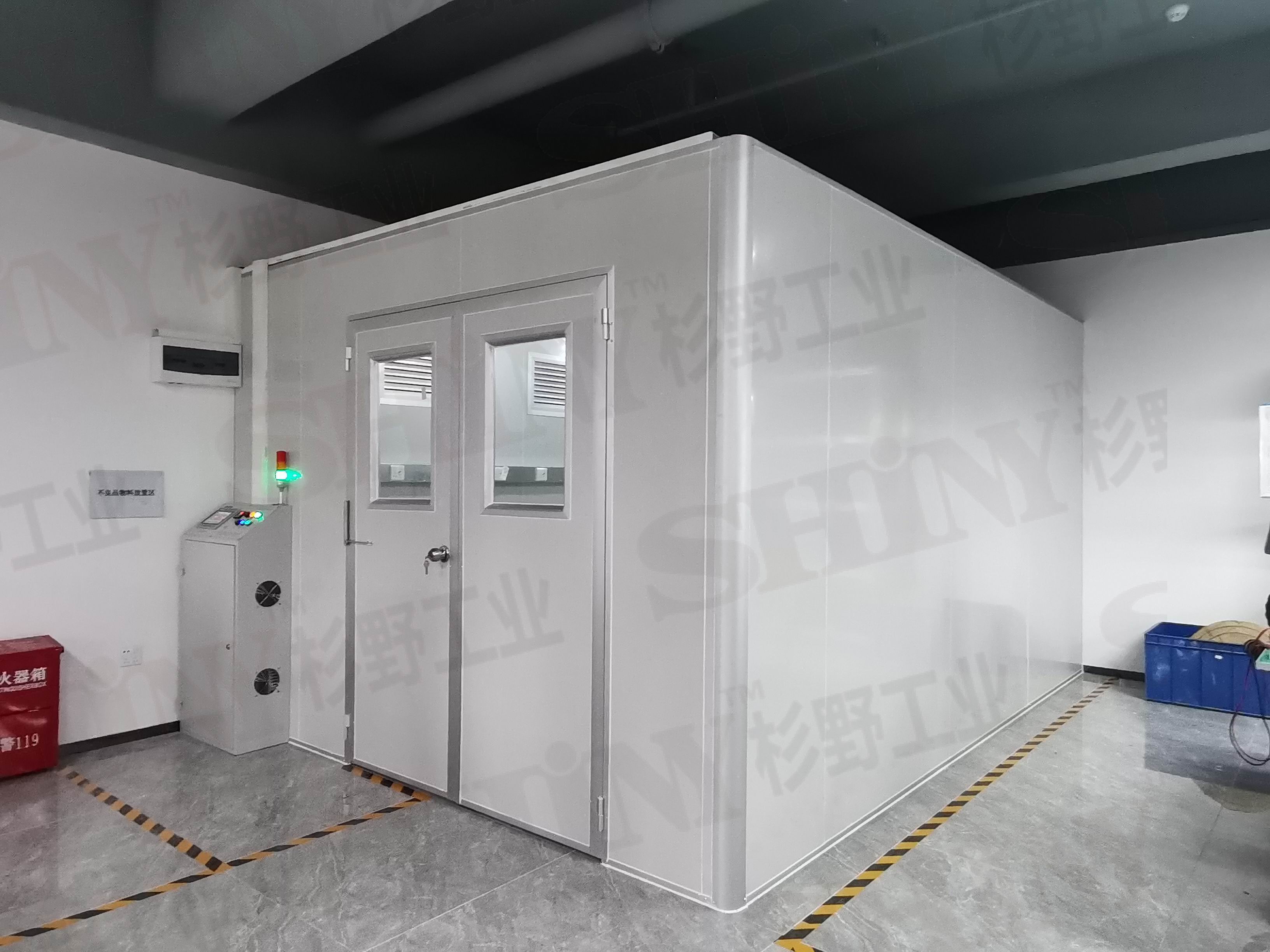 3.1 墻體材料:庫體五面采用雙面彩鋼保溫庫板(EPS計算機色)拼裝而成,固定支撐鋁材橫梁,鋁型材板包邊;地面不做處理,接合處打密封玻璃膠,有效保證房間的密封性,室內放置產品老化車。