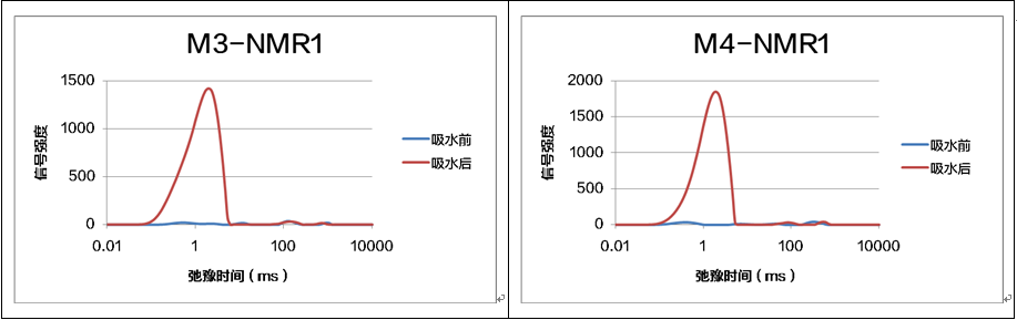 1.采用低場核磁弛豫分析技術可以得到巖石樣品的水分分布信息進而獲得樣品孔徑信息;通過含水標線的制定,得到吸水前后樣品的整體含水量結果;