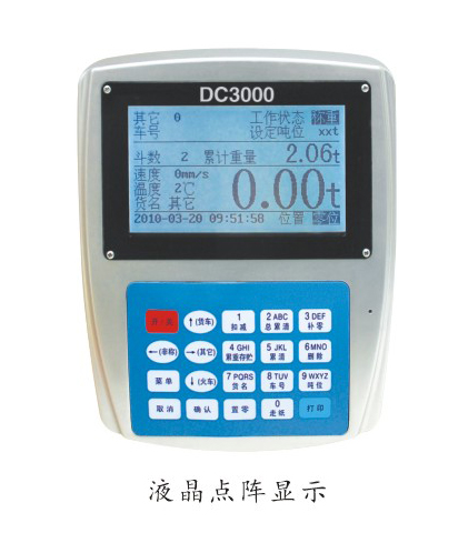DC6000(+)稱重儀表主要由三大部分構成,顯示、鍵盤和打印。 顯示部分是大屏幕點陣圖顯示,可顯示任何圖形或字符內容,主要用于稱重狀態時觀察重量信息。設置日期時間、車號等信息時使用。