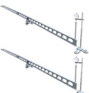 使用前杠桿、后杠桿用4只M12螺栓連接,不用時將螺栓卸下,前后杠桿分開裝入箱內。后杠桿與支架座相連,杠桿與底座之間采用向心球軸承連接,克服了以住采用散彈子軸承結構不穩定、靈活性差等缺點,并加有防塵蓋,防止了灰塵和雨水的浸入,加有足夠的潤滑油脂,底座上裝有調平螺絲和水平裝置,調整方便。百分表支架上有一表夾,可根據測量時的高度進行調整,每臺儀器上配0~10mm一級精度百分表1只。