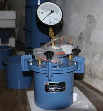 CA-3型直讀式混凝土含氣量測定儀測定原理是根據(jù)氣態(tài)方程,保持一定壓力的氣室和裝滿試料的容器之間,開閉壓力平衡時,兩個容器的壓力達到平衡時,氣室壓力減少的量即是砂漿中的空氣含量所占的百分比,在壓力表上表示出的即是試料中的空氣含量。