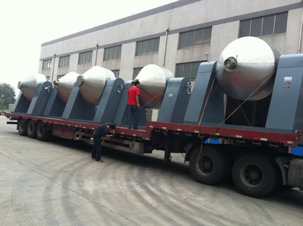 甲酚磺酸專用真空干燥機在應(yīng)用中常見問題:“放空”現(xiàn)象 一旦使用不當(dāng)時,雙錐回轉(zhuǎn)真空干燥機在干燥過程中會出現(xiàn)如真空管彎曲、密封套損傷、過濾頭變形乃至斷裂等現(xiàn)象,這就是由于在干燥過程中放入外界空氣進入罐體反沖過濾頭,此時罐體內(nèi)達到較高的真空度,會引起正負氣流的強大沖擊而損壞抽真空系統(tǒng)。 注意:在物料干燥完畢后需要放空罐體,排空時一定要排空閥控制其流量,即先把閥門少許打開,待罐內(nèi)真空度逐漸降低后再慢慢加大。