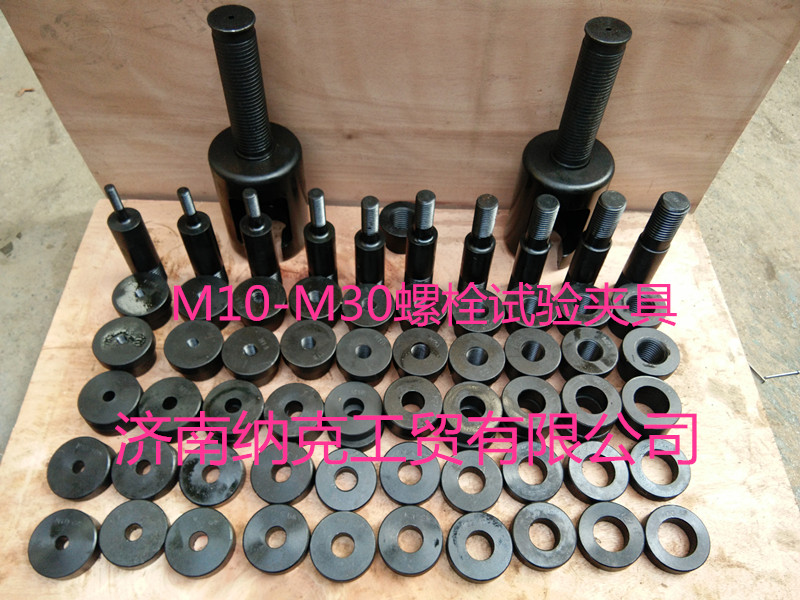 高強螺栓試驗夾具是我公司根據國家相關標準GB/T3098.1-2010,選用特殊材料精心設計加工制作而成,它通過不同方式的組合,可以進行螺栓楔負載試驗和普通拉力試驗、螺栓保證最小拉力荷載試驗、螺母保證荷載試驗。該夾具通過連接拉桿夾持到萬能試驗機的鉗口內,即可以進行各種拉力試驗,普通液壓萬能試驗機不需添加或更改其它裝置。