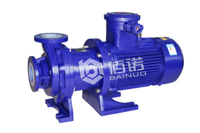 氟塑料磁力泵利用磁力偶合器傳遞動(dòng)力,完全密封無泄漏,當(dāng)電動(dòng)機(jī)帶動(dòng)磁力偶合器的外磁鋼旋轉(zhuǎn)時(shí),磁力線穿過間隙和隔離套,作用于內(nèi)磁鋼上,使泵轉(zhuǎn)子與電動(dòng)機(jī)同步旋轉(zhuǎn),無機(jī)械接觸地傳遞扭矩。由于液體被封閉在隔離套內(nèi),從而徹底解決了物料的泄漏,減少了污染,節(jié)約了能源,凈化了環(huán)境,保護(hù)了生產(chǎn)線上工作人員的身心健康。