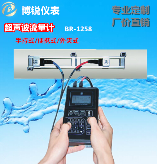 博銳BR-1258手持式超聲波流量計小巧、輕便,可隨時隨地進行流量測量,可充電電池及通用型電源的設計使您擺脫了電源限制