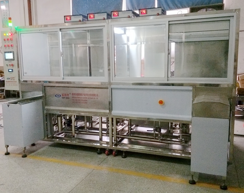 原理:清洗過程中工件通過超聲波高頻產生的“氣化現象”的沖擊和系統自身不停地作上下運動,增加了液體的摩擦,從而使工件表面的污垢能夠迅速脫落,實現其高清潔度的目的。
