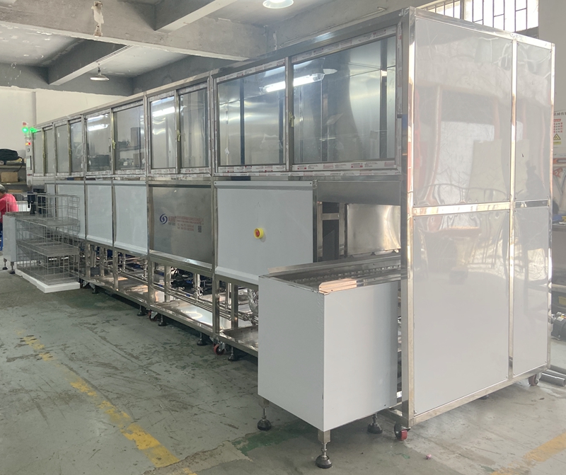 VGT-1009FTA為自動智能式超聲波清洗干燥一體機,用于玻璃(AVG及光學(xué)纖維面板)等零部件的自動化清洗及烘干。設(shè)備共有10個功能位,配置有拋動系統(tǒng)、循環(huán)過濾系統(tǒng)、自動恒溫系統(tǒng)、超聲波清洗系統(tǒng)、定時系統(tǒng)、儲液箱系統(tǒng)、溢流系統(tǒng)、自動智能式上下料系統(tǒng)、自動智能式機械手系統(tǒng)、加熱系統(tǒng)、真空烘干系統(tǒng)、頂部FFU系統(tǒng)等。設(shè)備采用環(huán)保型水溶劑洗滌、純水漂洗、噴淋漂洗及真空烘干,為環(huán)保型自動智能式清洗系統(tǒng)。