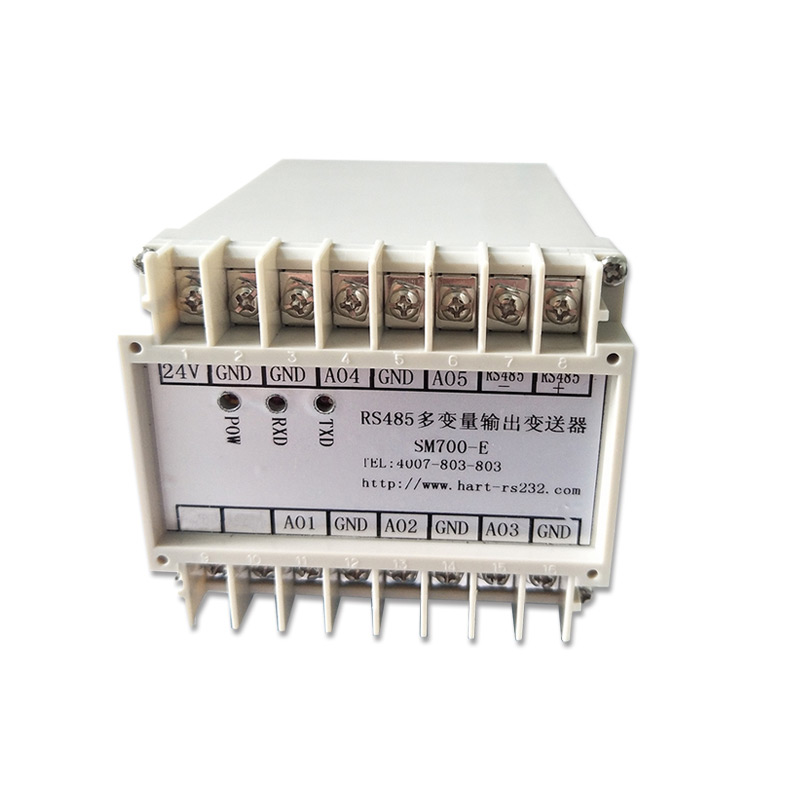SM700-E轉換器是集成RS485通訊、多路電流輸出于一體的高科技產品。它以高檔ARM單片機為核心,由接口芯片、硬件看門狗電路等組成,具有性能穩定、性價比高等特點。 SM700-E轉換器結構設計完全符合工業標準,在溫度范圍、震動、電磁兼容性和接口多樣性等方面均采用特殊設計,保證了惡劣環境下的穩定工作,為您的設備提供了高質量保證。 1.產品特性: ● 配有RS485通訊接口,可以進行參數配置。 ● 采用工業通用外殼,直接安裝在儀表上。 ● 采用專用配置軟件,可以與RS485智能儀表進行數據通訊。 ● 對RS485儀表變量進行電流變送輸出。 ● 支持標準的MODBUS 協議。 ● 支持單臺RS485儀表。 ● 支持多種特殊RS485智能儀表。 2.主要參數: ● 外殼尺寸:長82 mm × 寬69 mm × 高113 mm。 ● 工作環境溫度:-20℃~+80℃。 ● 儲存溫度:-25℃~+80℃。 ● 電源輸入電壓:DC 12~24V。