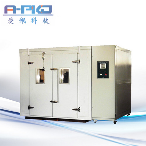 - 步入式高低溫環境試驗箱/電池步入室高低溫箱是把高低溫交變濕熱試驗箱的尺寸做大,類似于房間的室內大小,而且人可以步行進去搬運產品或者視察試驗情況,所以被稱為步入式高低溫交變濕熱試驗室。步入式高低溫環境試驗箱/電池步入室高低溫箱應用于測試產品量多、體積大之工業產品,如自動化零組件汽車部件、航天工業、國防工業、LED長型燈具、戶外大型廣告、批量電子電器件等等相關產品之耐高溫、耐低溫、耐濕熱交變或者恒定試驗。整套設備采用耐高低溫濕熱之庫板組合拼裝,內容積可根據顧客提供的要求任意設計大小,拆裝容易,擺放產品方便,日后顧客擴廠而遷移快速且沒影響。除了滿足國家標準、行業標準以外,愛佩公司還配備周全的眾多保護裝置,當試驗室發生異常時,控制器主機的熒幕上即時自動顯示出故障狀態或報警提示,還會切斷電源開關,并提供故障排除方法。更多想了解此試驗室的顧客可聯系愛佩公司業務部會有專業客服為大家服務,下面我們給大家介紹一下試驗室的簡易參數。