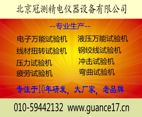 ◆★◆北京冠測精電儀器設備有限公司主要致力于材料電性能、力學性能、燃燒性能、熱物理性能、磨擦性能及行業專用儀器的研發與生產,產品銷售全國并出口,質優價廉,享有聲譽!!!聯系電話:010-59442132 網址http://guance17.cn◆★◆,材料試驗機 會東縣,拉力機廠家,最好的拉力機 武山縣,門式萬能試驗機,數顯萬能試驗機 開魯縣,液晶顯示萬能試驗機,二手拉力試驗機 中寧縣,門式萬能試驗機,數顯萬能試驗機 舟山普陀區,拉力機參數,電子扭轉試驗機 張家口宣化區,數顯拉力試驗機,薄膜拉力機 阿里,橡膠拉伸試驗機,萬能拉力試驗