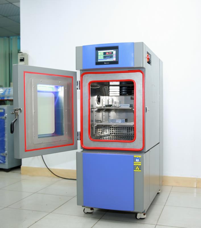 - 一、可程式恒溫恒濕試驗箱設備選用材料,使用的加工設備加工成型,外殼表面進行噴塑處理,美觀,平整。顏色搭配協調,,線條流暢自然。內膽設計成在工作時是一個密閉空間,選用進口不銹鋼板制作。室內的樣品架及其它附件配件均為不銹鋼板制作,設計合理,經久耐用。觀察窗設計在門的中央,還配置了照明系統,可以清晰的看到試驗過程。設備在符合標準的前提下,各方面性能都穩定的基礎上更具備實用性和便于控制。并且,該設備具有容易安裝、操作簡單,易于日常維護等特點。 二、可程式恒溫恒濕試驗箱滿足GB2423.1-2001試驗A《高溫試驗方法》; GB2423.2-2001試驗B《低溫試驗方法》; GB2423.3-93試驗Ca《恒定濕熱試驗方法》等標準,以及其它相關標準的要求。嚴格按GB 10592―89《高低溫試驗箱技術條件》、GB10586-89《濕熱試驗箱技術條件》進行設計制造。 三、可程式恒溫恒濕試驗箱簡介 主要技術參數 溫度范圍:-40℃~100℃ 溫度均勻度: ≤ 2℃ (空載時) 溫度波動度: &plsmn;0.5℃ (空載時) 溫度偏差: ≤&plsmn;2℃ 濕度范圍: 20%~98% R.H (溫度在30℃~60℃時) 濕度均勻度: +2% -3% R.H 濕度波動度: &plsmn;2% 濕度偏差: ≤ +2% -3% R.H 升降溫速率: 0.7℃~1.0℃/min (空載時) 時間設定范圍: 0~999小時 四、可程式恒溫恒濕試驗箱技術參數: ▲溫度范圍:低溫:(A:+25℃; B:0℃;C:-20℃; D:-40℃;E:-60℃;F:-70℃);高溫:100℃(150℃) ▲溫濕度解析精度/分布精度:0.1℃;0.1%R.H./&plsmn;2.0℃;&plsmn;3.0%R.H. ▲升溫/降溫時間:升溫約4.0℃/分鐘 ;降溫約1.0℃/分鐘 ▲內外部材質/內外箱材質:為SS304#不銹鋼板制 ▲保溫材質:耐高溫高密度氯基甲酸乙醋泡沫絕緣體材料 ▲試驗箱內部尺寸:按客戶要求制造