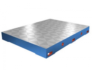 鑄鐵平板按國家GB7947-1999標準制造.鑄鐵平板精度等級有0,1,2,3,級及精刨,鑄鐵平板制成筋板式和箱體式,工作面有長方形,正方形或圓形.工作面采用刮削工藝,工作面上可加工V形,T形,U形槽和圓孔,長孔等.