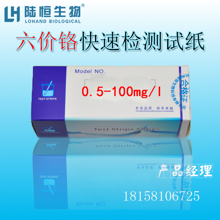 杭州陸恒生物重金屬鉻離子檢測試紙0.5-100mg/l,六價鉻檢測定條試劑盒100條裝,工業污