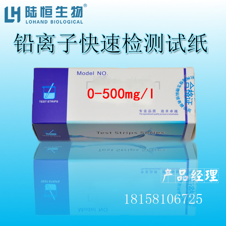 杭州陸恒生物鉛離子檢測試紙條0-500mg/l,重金屬鉛檢測定試劑盒100條裝,工業(yè)電鍍污水