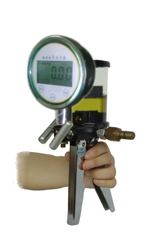 擰緊放氣閥門,將壓力輸出分別用所配接嘴連接,其中一擰入標準儀表,另一連接被檢儀表。