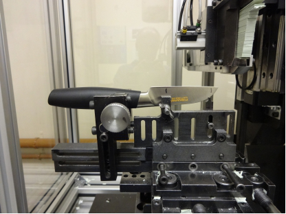 本裝置符合GB/T 30769-2014標準附錄A要求,專門用來測試利口類水果刀的鋒利度及耐用度是否符合標準要求。