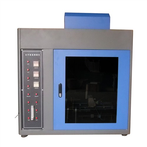 設備概述: 水平垂直燃燒性試驗是采用標準的燃燒本生燈(Bunsen burner)和特定燃氣(甲烷/丙烷或天然氣等),按一定的火焰高度和一定的施焰角度對呈水平或垂直狀態的試品進行定時施燃(單次或若干次),以試品點燃的持續時間和試品下的引燃物是否引燃來評定其燃燒性。
