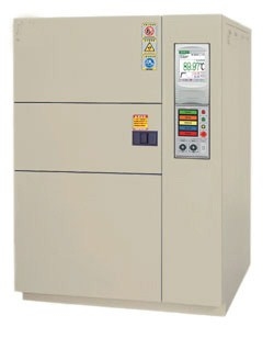 冷熱沖擊試驗箱用來測試材料結構或復合材料,在瞬間下經極高溫及極低溫的連 環境下所能忍受的程度, 藉以在相當短時間內試驗其因熱脹冷縮所引起的化學變化或物理傷害.適用的對象包括金屬, 塑料, 橡膠, 電子....等材料,可作為其產品改進的依據或參考。