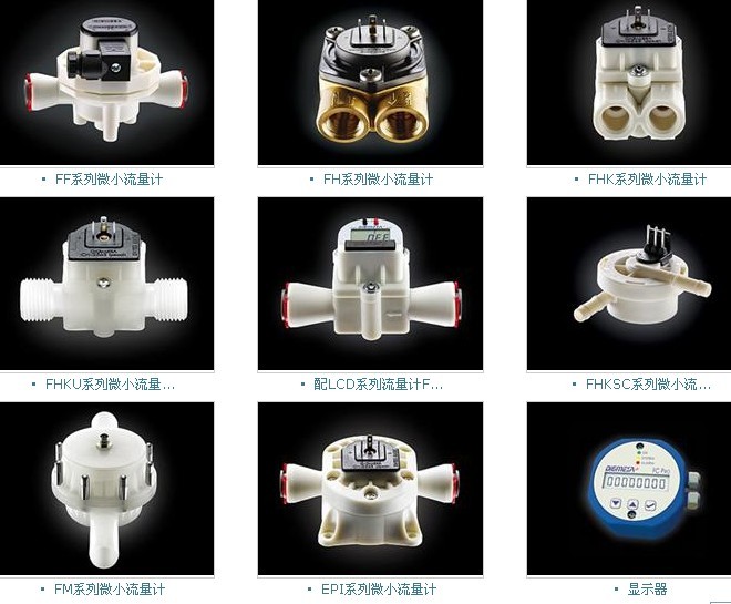FH FH系列產品典型應用:用于咖啡機,及部分工業領域技術特性:管道連接:G1/4通徑: 0.7mm至6.5mm0.7mm至6.5mm流量:0.03l/min-12l/min壓力:20℃時20Bar溫度范圍:-10℃-100℃,測量精度:小于1%,重復測量:< /-0.25%驅動電壓:4.5-24VDC主要適用流體:水此系列流量計主要材質為綠銅或鍍鎳銅(無毒),在高溫高壓狀態下仍能確保超高精度的流量計量,用途最為廣泛,典型應用:咖啡機,同時適用于工業領域,如石油,化學等需要流量調節/測量的領域。適用流體:水