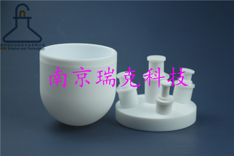 聚四氟乙烯(PTFE)燒瓶、反應瓶:聚四氟乙烯(PTFE)圓底燒瓶有單頸、三頸和四頸,17、19和24等標準口,每個標準口配有塞子。可拆卸清洗,內壁光滑。