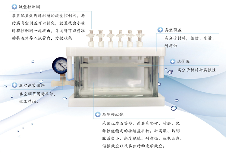 • SPR-SPE固相萃取裝置(固相萃取儀) 產(chǎn)品簡介 固相萃取(Solid-Phase Extraction,簡稱SPE),是一種基于液-固分離萃取的試樣預(yù)處理技術(shù),由液固萃取和液相色譜技術(shù)相結(jié)合發(fā)展而來。目前是一種廣泛應(yīng)用且備受歡迎的樣品前處理技術(shù),它是通過填料的鍵合功能團(tuán)和待分離化合物質(zhì)之間的作用力,將目標(biāo)化合物與樣品基質(zhì)分離,然后再用洗脫液洗脫或加熱解吸附來達(dá)到分離和富集目標(biāo)化合物的目的。 產(chǎn)品特點(diǎn) · 防止交叉污染,防霧化真空槽設(shè)計(jì),操作簡單、快速。 · 無相分離操作易于收集分析物并可處理小體積樣品。 · 玻璃真空槽采用石英玻璃模具成形,壁厚均勻,可承受-80kPa以上的高負(fù)壓。 · 萃取柱托盤、收集架由特質(zhì)高分子材料制成,美觀并耐腐蝕。 · 真空裝置頂蓋采用進(jìn)口高分子材料制成,耐強(qiáng)酸強(qiáng)堿。 · 壓力調(diào)節(jié)閥耐腐蝕、耐高低溫,經(jīng)久耐用。 SPR-SPE24孔方形固相萃取裝置廠家SPR-SPE24孔方形固相萃取裝置廠家SPR-SPE24孔方形固相萃取裝置廠家 產(chǎn)品參數(shù) 產(chǎn)品名稱 12位固相萃取裝置 24位固相萃取裝置 產(chǎn)品型號 SPR-SPE12 SPR-SPE24 可處理樣品數(shù) 12位 24位 頂蓋材質(zhì) 聚甲醛 聚甲醛 真空玻璃槽材質(zhì) 石英砂 石英砂 耐壓能力 優(yōu)于-80kPa 優(yōu)于-80kPa 穩(wěn)定壓力范圍 0至-80kPa 0至-80kPa 配套試管尺寸 φ10/φ13/φ16,長度105mm以下 φ10/φ13/φ16,長度105mm以下