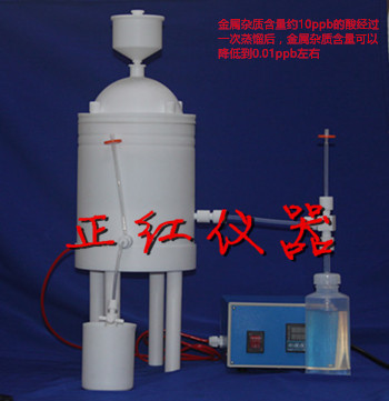濱海正紅---高純酸提純器:又稱酸純化系統(tǒng),高純酸提純器,酸試劑提純器,高純酸蒸餾純化器等,可用于實(shí)驗(yàn)室酸如HNO3、HCl、HF、堿溶液和有機(jī)溶劑的純化,純化后的酸和Merck的一樣好,可用于痕量和超痕量分析的樣品制備,純化器帶有液位計(jì)方便觀察里面的溶液,一個(gè)出酸口,一個(gè)排廢液口,操作維護(hù)方便,是超純凈實(shí)驗(yàn)室化學(xué)反應(yīng)的必備產(chǎn)品。 --(谷小雨139 139 23206 ; 025-8322 4668)實(shí)驗(yàn)后期可配套我單位Teflon特氟龍系列試劑瓶收取高純酸。為了滿足更多客戶的需求,我廠研發(fā)了更大規(guī)格的高純酸提純器(2000ml)