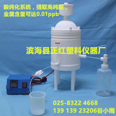濱海正紅---高純酸提純器:又稱酸純化系統,高純酸提純器,酸試劑提純器,高純酸蒸餾純化器等,可用于實驗室酸如HNO3、HCl、HF、堿溶液和有機溶劑的純化,純化后的酸和Merck的一樣好,可用于痕量和超痕量分析的樣品制備,純化器帶有液位計方便觀察里面的溶液,一個出酸口,一個排廢液口,操作維護方便,是超純凈實驗室化學反應的必備產品。 --(谷小雨139 139 23206 ; 025-8322 4668)實驗后期可配套我單位Teflon特氟龍系列試劑瓶收取高純酸。為了滿足更多客戶的需求,我廠研發了更大規格的高純酸提純器(2000ml)