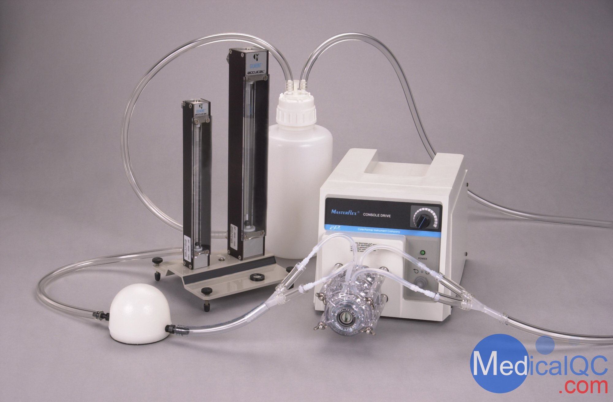 該系統提供的穩態流量范圍為20到950毫升/分鐘。可根據要求提供更高的流速。泵的速度由一個旋鈕控制。在測試過程中,兩個在線流量計連續監控通過模擬體的模仿測試液的血液流速。大容量的測試液儲存器可確保通過幻象泵送的流體即使連續使用數小時也不會有氣泡。