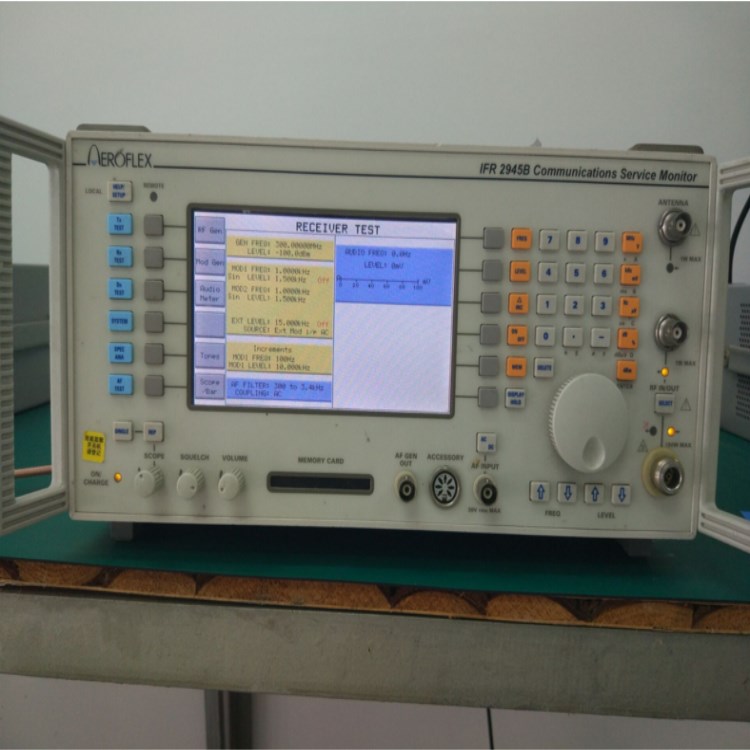 美國艾法斯IFR2945B內部集成了二十余種測量儀表的功能,標準配置有全掃寬頻譜分析儀。其內部數字存儲示波器支持余輝選擇功能,可用于捕捉不穩定的信號。內置擴展插槽,可升級測試模擬蜂窩及集群電話。2945B的重量輕于12公斤,功耗低于100W。無交流供電時,可采用電池或車載電源供電。