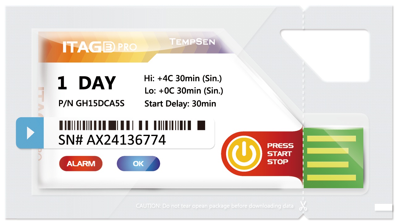 ITAG3 Pro系列一次性溫度記錄標簽是專門為冷鏈物流的溫度監測所設計研發的一次性溫度記錄標簽,它精巧輕薄的外觀體積可以容納于任何空間有限的包裝、容器之內,為您節省更多珍貴的空間資源。ITAG3 Pro作為一款工廠預設置參數的溫度記錄儀,使用異常簡便,按鈕便即刻啟動工作,忠實記錄運輸過程中的任何溫度異常,不僅為您的敏溫供應鏈贏得更多時間,而且提升運輸過程的信息透明度。自動生成加密的PDF格式溫度數據報告是ITAG3 Pro的核心優勢,在貨物運抵之后,用戶無需安裝任何專用軟件,便可直接獲取ITAG3 Pro生成的PDF數據報告,而且,先進的加密技術的應用可以防止數據篡改或偽造,保證了數據的完整性和真實性。數據報告涵蓋溫度信息摘要、報警信息、全程溫度曲線圖以及詳細的數據點列表。