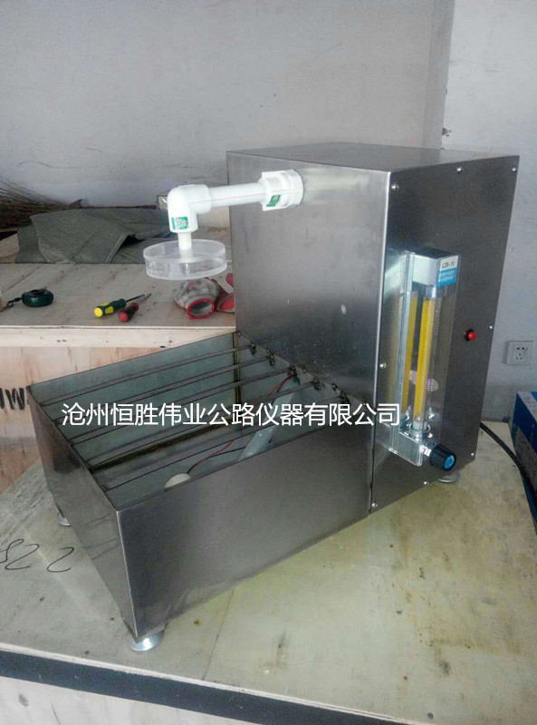 1、試樣準(zhǔn)備好以后,依次在測試儀水池上面放置試樣架,阻水罩,然后用密封膠將阻水罩四周密封,調(diào)整好噴頭位置,將液位感應(yīng)器固定在阻水罩側(cè)壁(高度任意設(shè)置)。