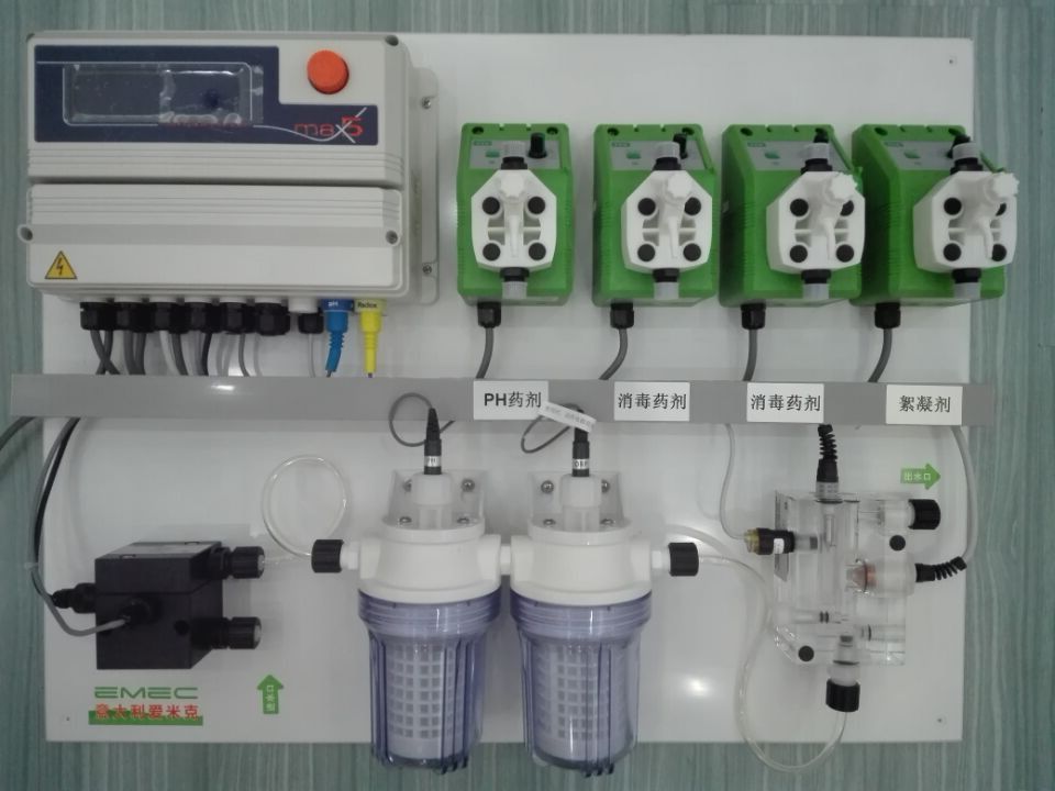 ·水質分析儀及計量泵自動化控制系統,結構緊湊,完整配套。·旋鈕操作,人性化設計,操作直觀、簡便。·連接采樣水源以及加藥管后,通電即可使用,安裝簡便,縮短現場裝配及施工的時間。·掛壁式安裝,IP65等級,底板為抗酸堿耐腐蝕材料。·計量泵吐出流量依照實際需求選型,靈活度高。·選配水流偵測功能,確保量測值正確,安全加藥。·水流偵測待機控制功能,采樣水停止流動時,可使分析儀進入待機狀態,暫停輸出控制計量泵加藥,訊號消失后,自動回復正常工作狀態。·搭配溫度電極,可手/自動PH的溫度補償。·專用于游泳池、SPA、水療館、溫泉會館等水處理系統。