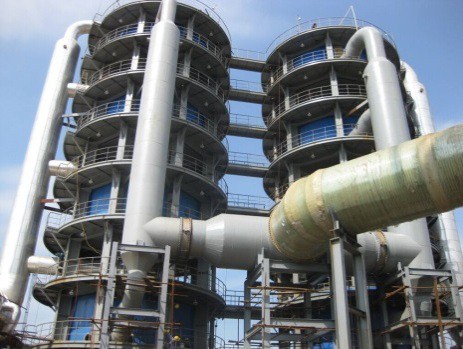 3、安裝簡單,施工周期短(3-7天)。無需改變原有塔身結構,只拆除原有一層除霧器安裝上該裝備即可,運行風阻500Pa左右;