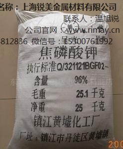 上海銳美金屬材料有限公司專銷黃墟高純焦磷酸鉀,日本高純焦磷酸鉀,適合電鍍中性鍍銅。