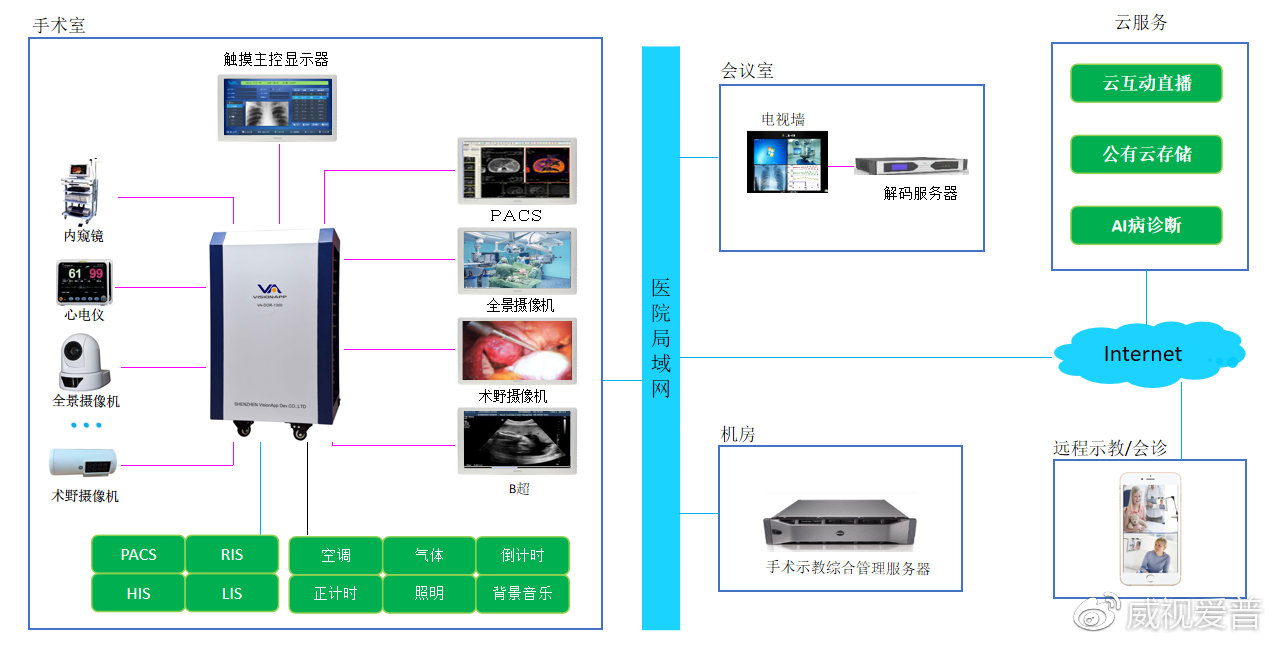 VA數字化手術室系統能夠與VA遠程會診系統對接。在遠程會診過程中,作為會議資源,可以隨時把數字化手術室的視頻調取到遠程會診會議中,遠程專家可以實時看到數字化手術室中的患者情況。