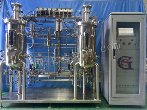 16.控制系統:采用德國西門子S7-200系列PLC控制系統+10.5”彩色觸摸屏+GS8000型控制軟件控制核心、信號采集、變送器、功率驅動各類執行元件,也可以對發酵過程實施遠程監控,如采用多聯或多級發酵罐也可采用GS8100型/GS9000型發酵過程控制器實行對多聯或多級發酵罐的測控功能。