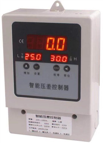 通用型前室壓差控制器/樓梯間壓差控制器,通過使用壓差控制器檢測前室/走道或防煙樓梯間與前室的壓差值,帶工作指示燈,報警指示燈及報警蜂鳴器,當壓差值達到設定值時(前室與走道25-30Pa,樓梯間:40-50Pa)壓差控制器輸出開關信號,控制信號接入位于樓頂的控制箱,通過控制箱輸出控制信號控制旁通泄壓閥的啟動和停止,實現加壓送風泄壓目的。
