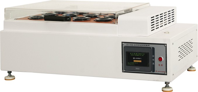將材料覆在內(nèi)含有32℃去離子水的透濕杯口上,透濕杯放在恒溫水槽內(nèi),其表面以20℃/65﹪RH空氣,以穩(wěn)定流速吹過,以量測透濕杯每小時重量損失率(即內(nèi)部水被蒸發(fā)排除量)。
