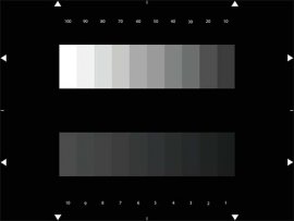 伽瑪測量測試卡顯示的兩列灰階透射值: