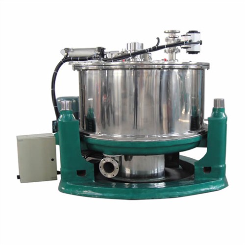 - SG-q型離心機是一種氣動刮刀下卸料變頻調速間歇操作程序自動化作業的離心分離設備,類屬于刮刀下卸料系列。 本機采用變頻調速器調控電機、實現無級調速和軟起動及制動,配有現場輔助控制盤,實現兩地控制。采用能耗制動單元、制動電阻進行電器制動剎車。選用導靜電阻燃(防爆)窄V三角帶傳遞動力。主機通過窄B三角帶將動力傳遞給轉鼓,使轉鼓繞自身軸線高速回轉,產生離心力場,實現對分離物料的液固分離作業。 本機刮刀卸料人工操作由氣動控制。接通電源,電機起動,變頻調速器由0→50HZ范圍調節,當轉鼓轉速為350轉/分至額定轉速(據物料性質選定)正常運轉后,進料閥打開,懸浮液沿進料管進入機內,附于轉鼓壁上,裝滿料后(由人工進行控制),全速分離(速度依據物料定,但不大于轉鼓極限轉速)。液相部分經濾布、濾網及鼓壁上的孔被離心力排出鼓外,通過機體排液管排出。固相部分則留在鼓內,若對固體需要洗滌,洗滌液經機體出口排至出液管,洗滌達到工藝要求后,洗滌閥關閉,此時進入固相脫水過程,液體排出至固體濕含量達工藝要求后,變頻調速至60—120轉/分鐘后,轉鼓進入低速運轉正常狀態。這時,刮刀旋轉,可進行刮刀卸料、卸料后刮刀復位,這樣一個周期即完畢,進入下一個周期,周而復始,完成對全部懸浮液的分離。