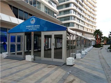篷房主體框架結構主要采用高強度鋁合金型材(材質6061/T6)作為結構支架,連接部位采用國際焊接技術。安裝拆卸方便,可調節式基座可應對各種不同類型的場地,篷布采用阻燃的雙面PVC合成纖維布,具有抗風、防水、防火、防紫外線的優良性能,安全可靠性完全達到同類產品的標準,抗風速可達80-100公里/小時(風載荷0.3-0.5千牛/平方米)。本公司嚴格執行國際安全標準,已通過ISO9001:2000質量體系認證,是國內專業從事篷房租賃、銷售、設計、制造及活動策劃的公司,并獲得全國知名篷房十佳名優品牌、中國展覽會行業消費者相當喜愛的知名品牌。公司還獲得多項榮譽:質量信譽雙保障示范單位、中國展會理事單位、中國會展行業財富推薦20強、上海市會展行業協會會員單位、年度資信等級A級、年度明星企業等。公司現有技術管理人員二十多名,正式員工九十余人。公司總部毗鄰于上海南站,生產基地位于閔行區浦江鎮世博工業園內,有6000平方米寬敞的廠房,先進的生產線設備、專業的施工隊伍和完善的管理制度。迄今,公司已成功組織和參與了國內外多項重大展覽和體育賽事活動,主要有:2004年雅典奧運會、2006年卡塔爾亞運會、2006年上海合作組織六國峰會指定國內篷房搭建商、2008年北京奧運全國火炬接力賽及北京奧運會主會場、上海和沈陽分會場等,以及世界一級方程式賽車上海站、F1摩托艇世界錦標賽中國深圳大獎賽、青島奧帆賽、上海國際汽車展、上海國際家具展、歷屆深圳嘉年華年貨博覽會、歷屆廣東國際名家具展、2008年奧運會北京主賽場、上海、沈陽分賽場、2010年世博會安檢篷等篷房搭建、2011年國際泳聯世界錦標賽、歷屆中國國際紡織品博覽會、2014年俄羅斯索契冬奧會場館及2016年巴西里約熱內盧奧運會場館搭建、2016杭州G20峰會、2018淮安國際食品博覽會、2018中國首屆進口博覽會、2018云棲大會、2018亞歐博覽會。在全國各地有著良好的信譽,并受到行業廣泛的關注。此次“世園會”是2019我國對外形象展示的窗口型展會,安檢要求必定嚴謹,我司具有豐富的相關安檢類篷房施工經驗,我們會針對此次大會成立由專業人員組成的專項工組,他們具有適應安檢篷搭建工作的多變性、突發性的能力,從而有力的保證安檢篷房的施工進度及安全。