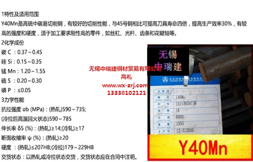 Y40Mn易切削鋼無錫供貨商,無錫中瑞建供