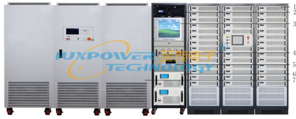 直流繼電器自動測試系統組成部分:1. 直流電源 2.工業計算機主機3. 顯示器 4. 中央控制盒5. 萬用表6. 直流輔助電源7. 直流負載