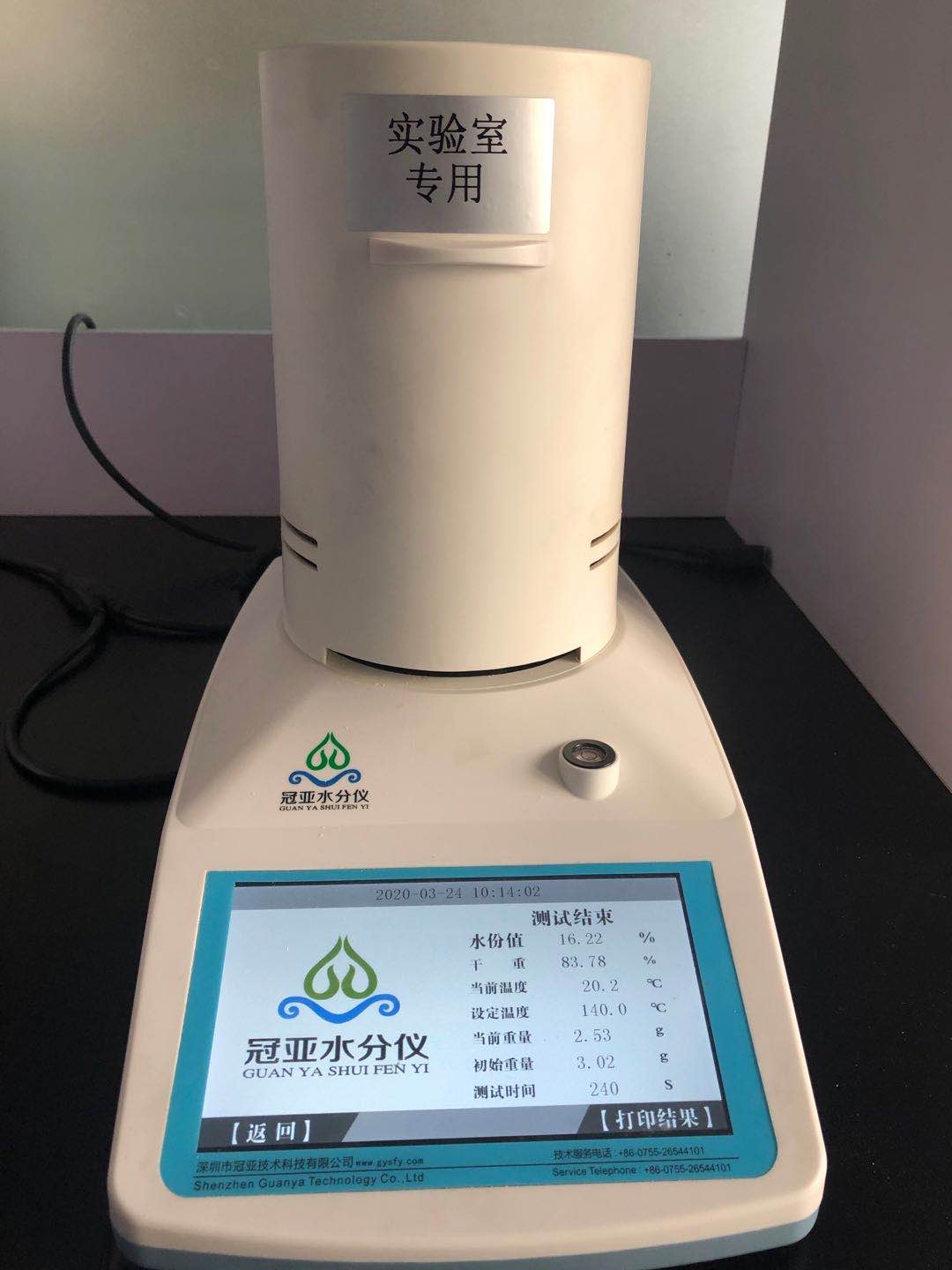 深圳冠亞技術科技公司研發生產的SZ-GY2000型鹵素品位測定儀 品位測定儀廠家 品位測定儀品牌采用一鍵式操作,自動稱重、計算、鎖定水分含量值%,對粉的附著水、結晶水,同時快速測定三相指標,結合改進的脫硫建筑相組成分析方法,大大縮短了試驗時間,有利于廠家對產品品質的控制及改進。